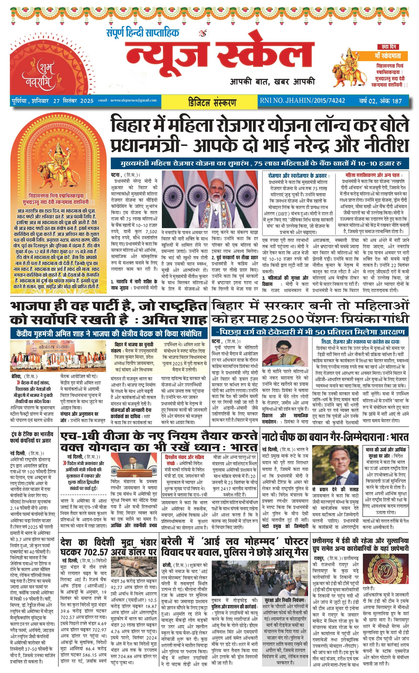 epaper purnea 27 september newsscale purnea epaper Akhilesh Jaiswal September 27, 2025 Spread the loveclick here to open ⇒1 to 12 newsscale purnea 27 sep About The Author Akhilesh Jaiswal Hello, I am Akhilesh Jaiswal. See author's posts Spread the love Post navigation Previous: किलकारी बाल भवन, पूर्णिया में धूमधाम से आयोजित बाल धमाल डांडिया उत्सव, बच्चों और परिवारों ने उठाया आनंदNext: बिहार में महिला रोजगार योजना लॉन्च कर बोले प्रधानमंत्री- आपके दो भाई नरेन्द्र और नीतीश Leave a Reply Cancel replyYour email address will not be published. Required fields are marked *Comment * Name * Email * Website Save my name, email, and website in this browser for the next time I comment. Related Stories epaper purnea 27 october news scale purnea epaper Akhilesh Jaiswal October 27, 2025 epaper purnea 25 october newsscalepurnea epaper Akhilesh Jaiswal October 25, 2025 epaper purnea 24 october newsscalepurnea epaper Akhilesh Jaiswal October 24, 2025