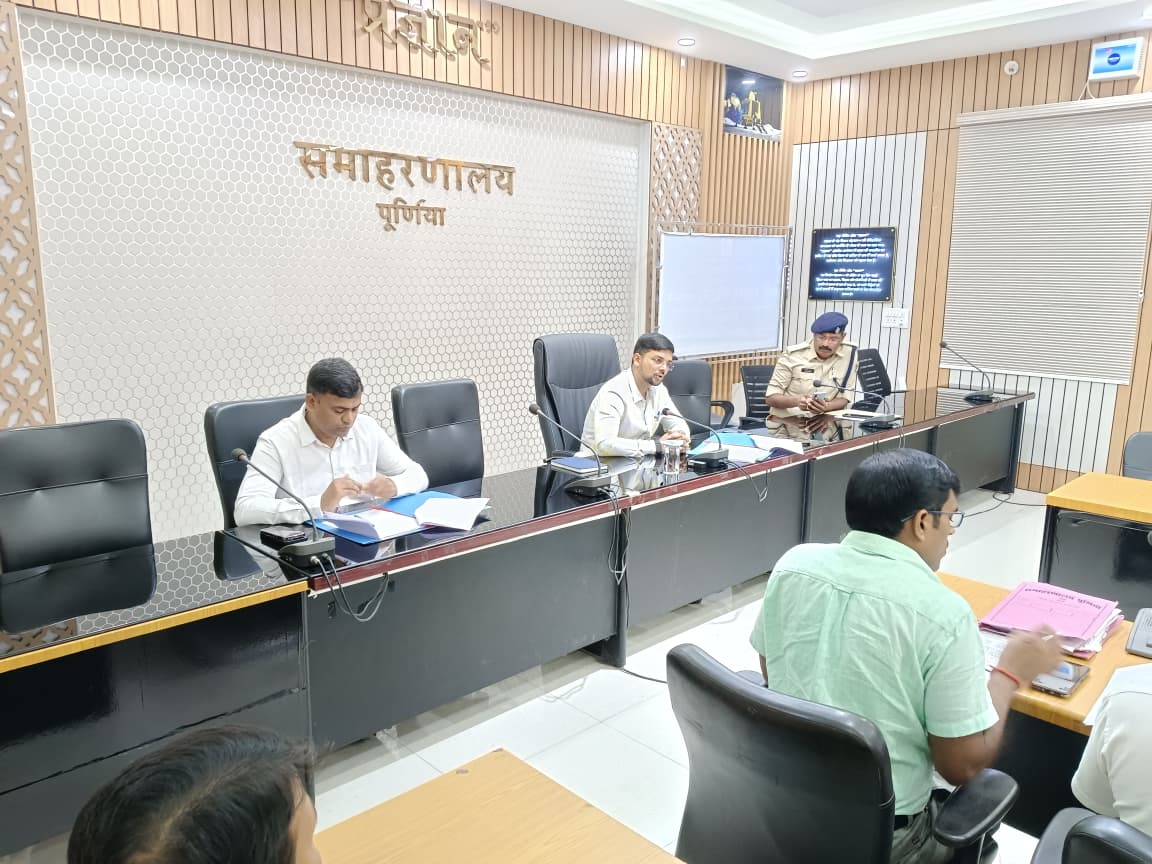 जिला पदाधिकारी, पूर्णिया अंशुल कुमार की अध्यक्षता में महानंदा सभागार में अनुसूचित जाति एवं जनजाति अत्याचार निवारण अधिनियम 1989 के तहत जिला स्तरीय अनुश्रवण एवं सतर्कता समिति और मैनुअल स्केवैजर की तृतीय त्रैमासिक समीक्षा बैठक का आयोजन किया गया। बैठक में अपर समाहर्ता, विधि व्यवस्था, अपर पुलिस अधीक्षक, असैनिक शल्य चिकित्सक-सह-मुख्य चिकित्सा पदाधिकारी, थानाध्यक्ष, विशेष लोक अभियोजक, प्रखंड कल्याण पदाधिकारी और समाजसेवी सहित कई अधिकारी और प्रतिनिधि उपस्थित रहे।