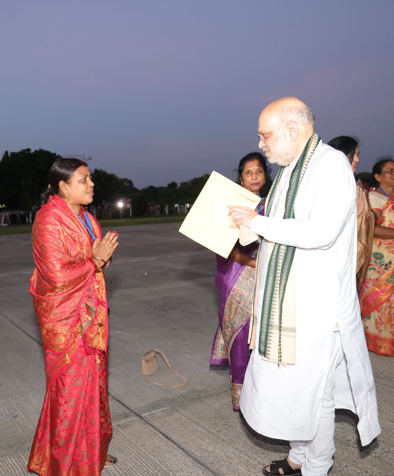 पूर्णियाभाजपा महिला मोर्चा प्रदेश कार्यसमिति की सदस्य पूर्व वार्ड पार्षद सरिता राय ने चूनापुर सैन्य हवाई अड्डा पर केंद्रीय गृह मंत्री अमित शाह से शिष्टाचार भेंट की। श्रीमती राय ने पुष्पगुच्छ देकर गृहमंत्री का स्वागत किया।