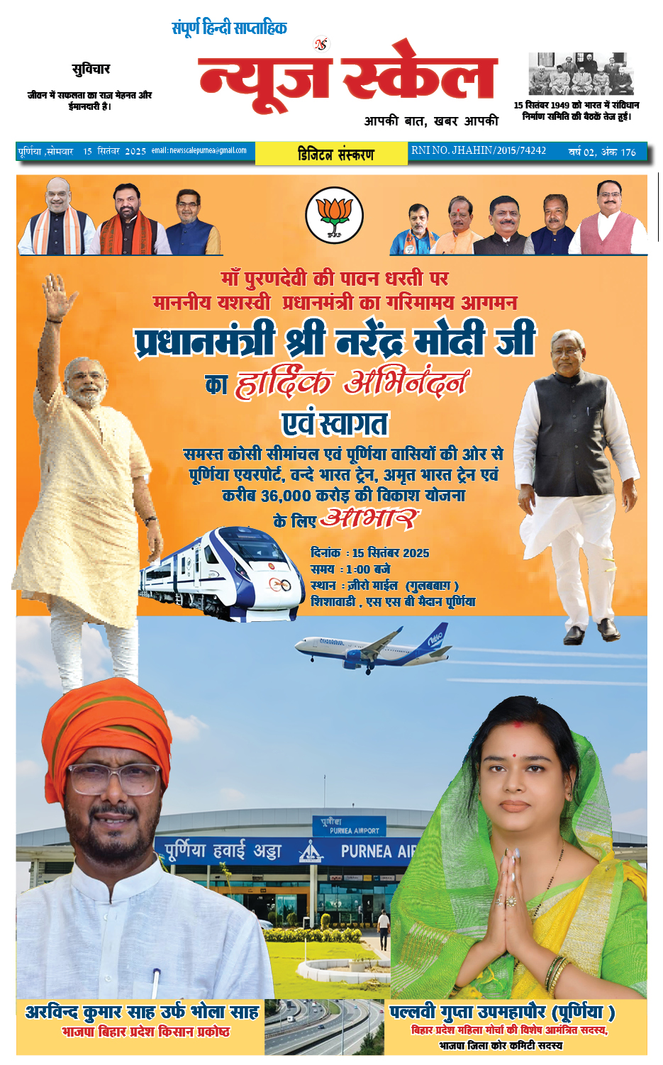 प्रधानमंत्री नरेंद्र मोदी के पूर्णिया आगमन के अवसर पर उपमहापौर पल्लवी गुप्ता ने सीमांचल और कोसी क्षेत्र की विकास से जुड़ी 12 बड़ी मांगें सामने रखीं। उन्होंने इस ऐतिहासिक मौके पर कहा कि यह दौरा क्षेत्र के विकास के लिए एक सुनहरा अवसर है। पल्लवी गुप्ता ने एयरपोर्ट उद्घाटन को सीमांचल की प्रगति की दिशा में एक महत्वपूर्ण कदम बताया और जीएसटी सुधारों से व्यापारियों व उपभोक्ताओं को मिलने वाले सीधे लाभ की भी जानकारी दी।